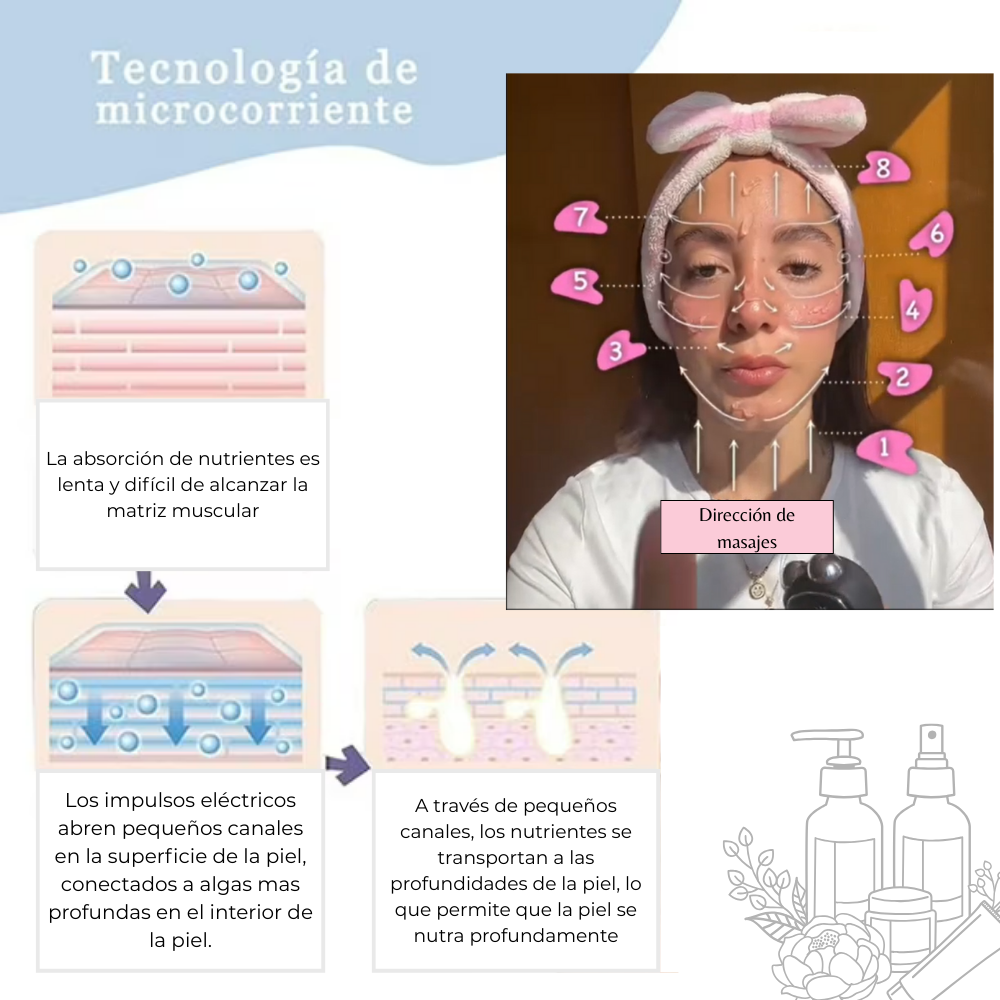 Se necesita usar un gel conductor o “activador” específico para microcorriente para asegurar que la corriente pase de forma efectiva, evitar tirones o molestias, y proteger la piel. Sin gel adecuado, puede no funcionar bien o incluso generar descargas molestias.